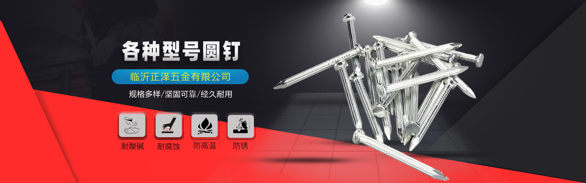 臨沂市蘭山區角度五金有限公司是一家(jiā)集生(shēng)産,銷售為(wèi)一體(tǐ)生(shēng)産型企業。主要經營民用8号-24号鐵(tiě)絲。熱鍍鋅黃鐵(tiě)絲8号-16号。大(dà)棚專用鋼絲8号-16号。冷拔絲,鑫宇牌圓釘2分-150分。芝麻花(huā)圓釘2分-150分,同時(shí)代理(lǐ)青島英格爾特種鋼釘,我廠産品廣泛用于國防,工業,鐵(tiě)路,煤礦,建築等各種工業部門(mén),産品銷往全國各地。為(wèi)廣大(dà)的新老客戶提供了質優價廉的産品。